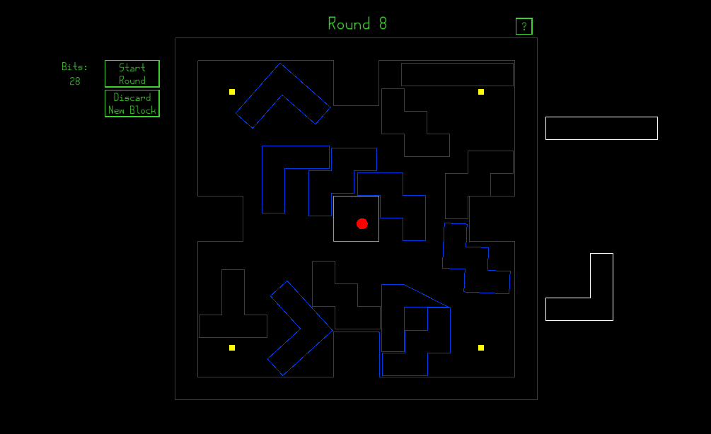 Try to maintain a clean path in an increasingly cluttered space! If a path gets obstructed, that's okay! There's more than one goal. But the blocks will keep coming.